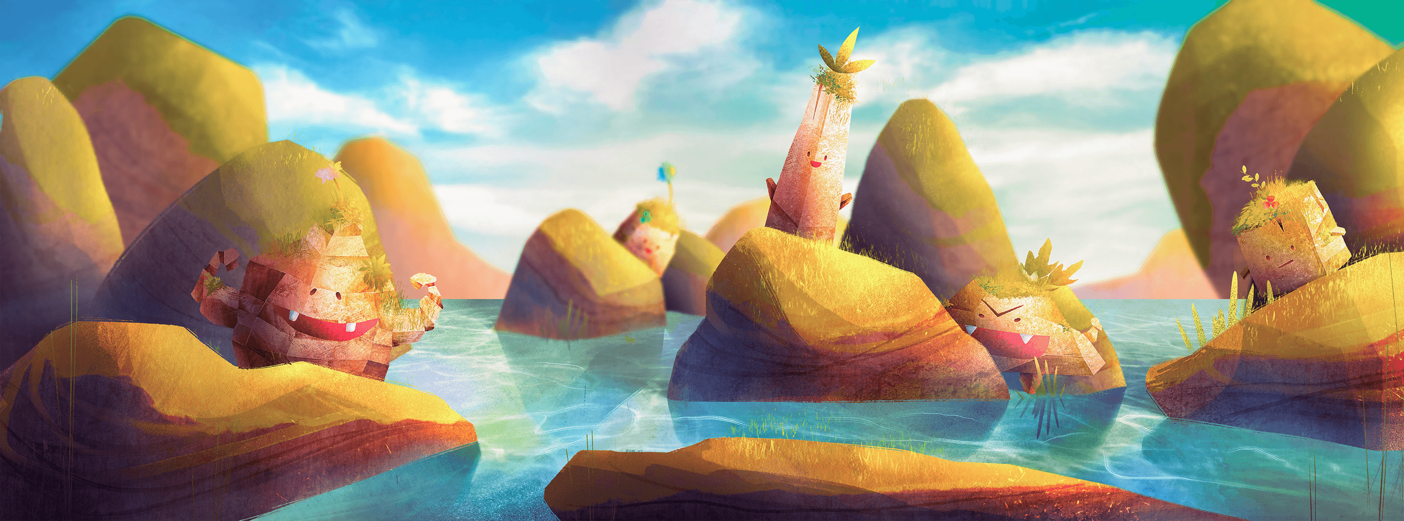 To help calm and ease the anxiety levels of pediatric patients during chemotherapy, virtual reality simulations were created to support this effort. This concept plays on the world of imagination with stone golems that play hide and go seek.
