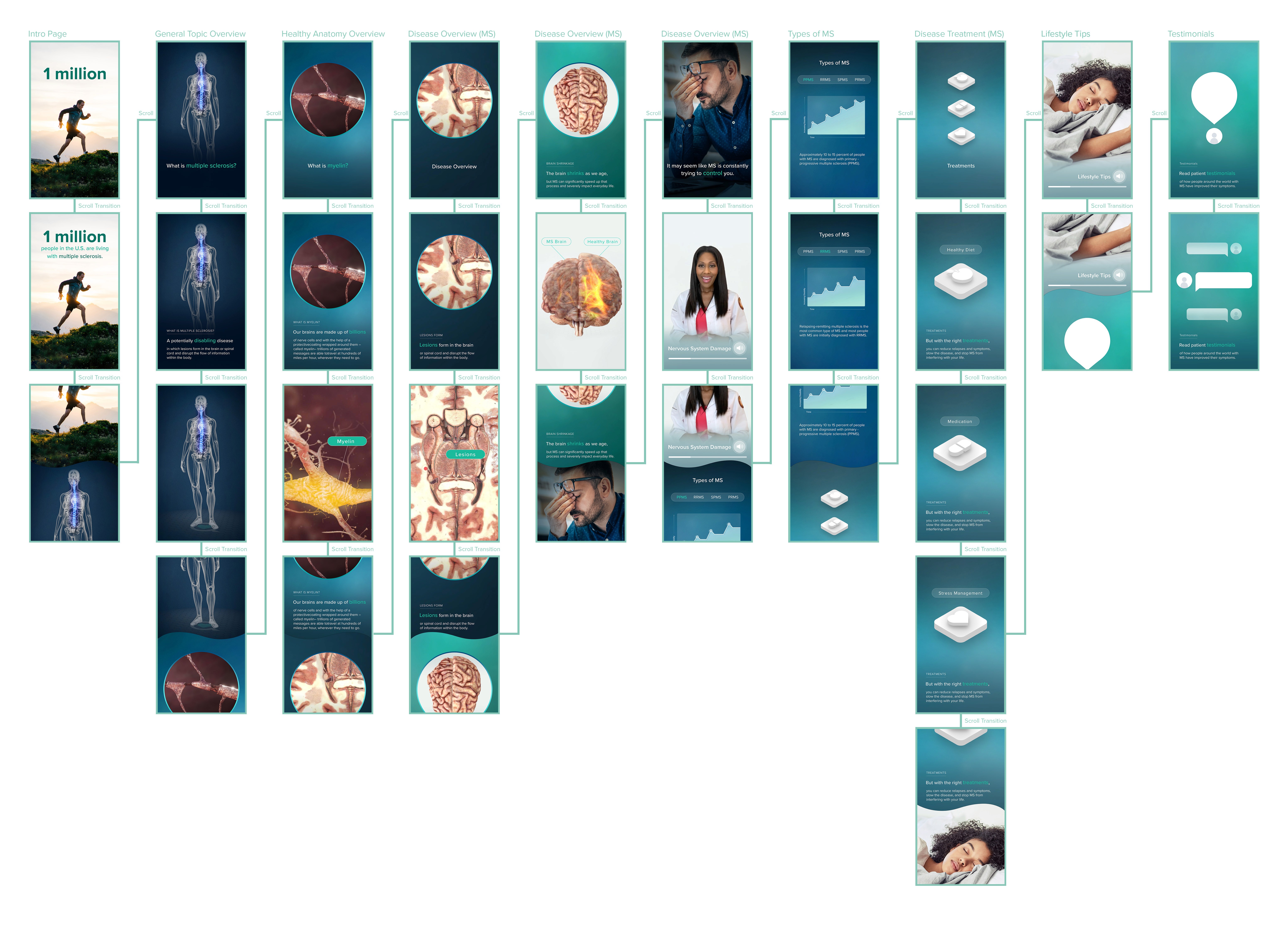 To nurture an informative and seamless experience for users to learn about multiple sclerosis, I worked with other team members and doctors to gather information to build this experience.
